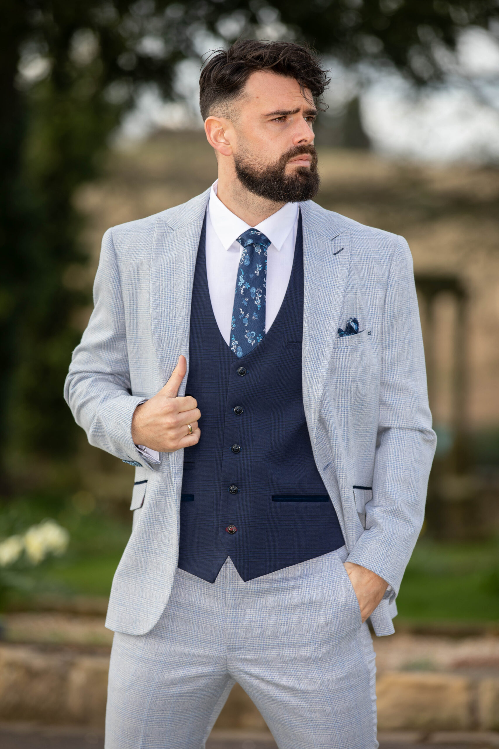 To Hire, Marc Darcy Bromley Navy Check (full outfit)