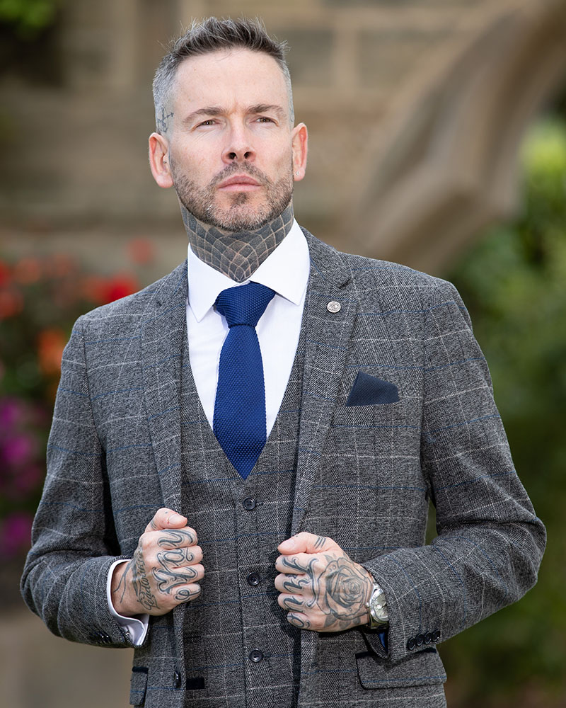 To Hire, Marc Darcey Scott Grey Checked Suit (full outfit)