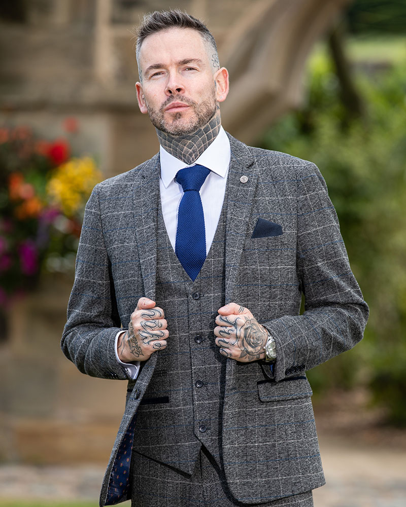 Marc Darcy Scott Grey Check Tweed 3pc Suit