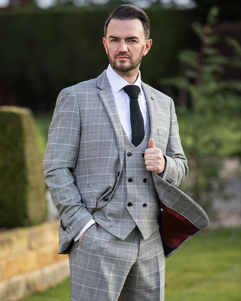 To buy Marc Darcy Ross Grey Check 3pc Suit
