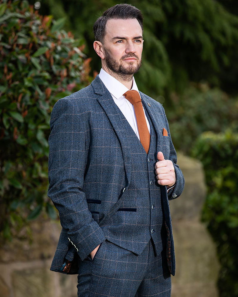 Marc Darcy Scott Blue Check Tweed 3pc Suit