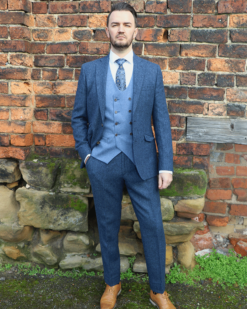 To Hire, Torre Blue Herringbone Tweed suit (full outfit)