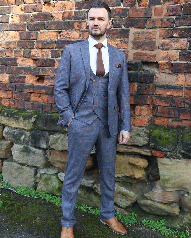Marc Darcy Jenson Grey/Tan Checked 3pc Suit